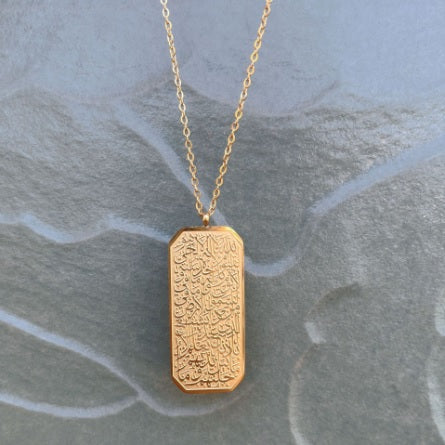 This high-quality Ayatul Kursi necklace, carefully engraved with attention to the most intricate detail will be your most meaningful piece of jewelry. The letters are perfectly legible, therefore the necklace is an ideal daily reminder to recite Ayatul Kursi.